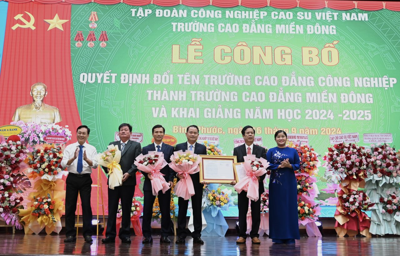 Trường Cao đẳng Miền Đông (tên cũ Trường Cao đẳng Công nghiệp Cao su) tổ chức lễ đổi tên trường và khai giảng năm học mới 2024 – 2025, sáng ngày 16/9.